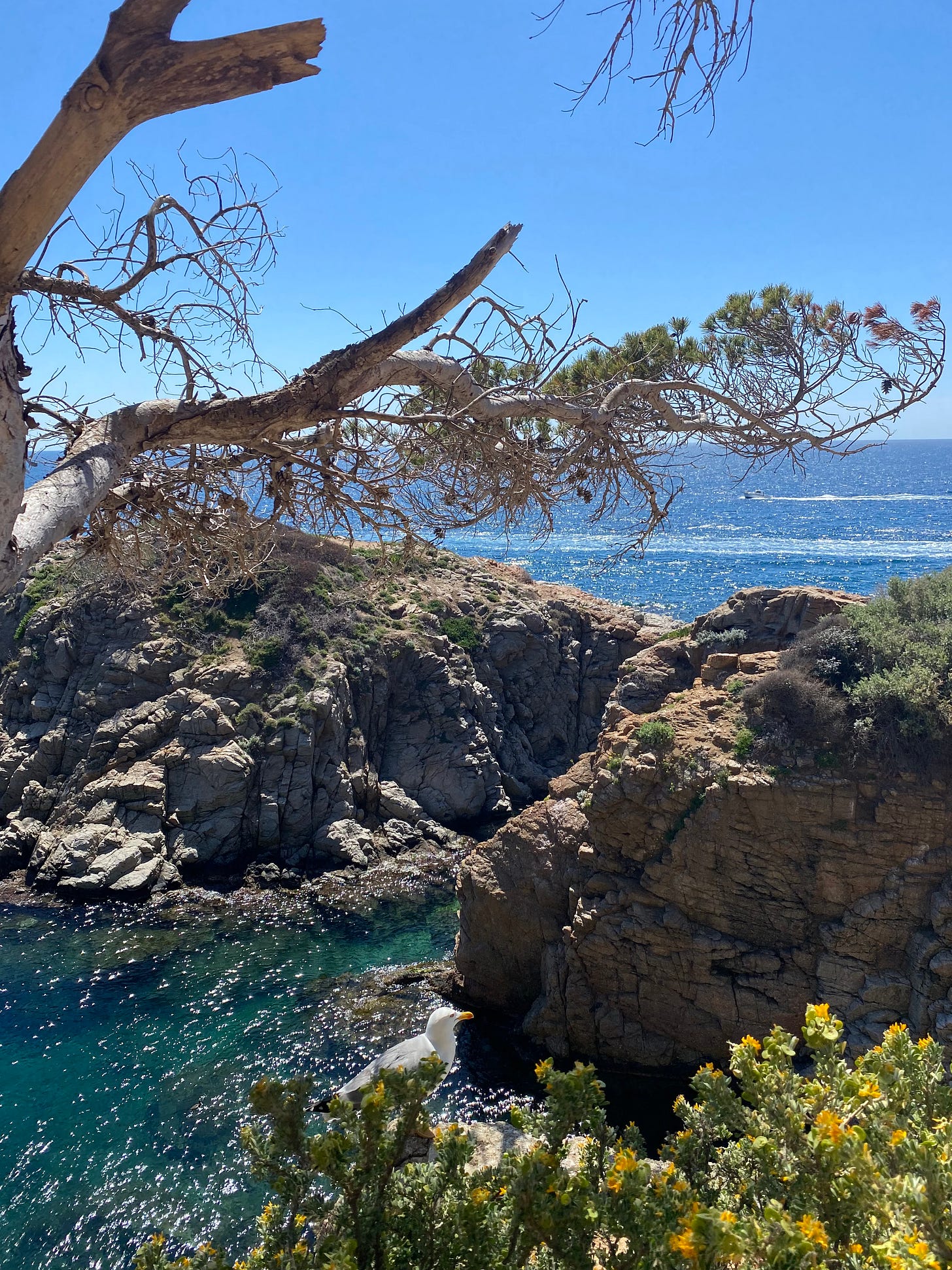 The pretty coastal path from S'Agaro to Sa Conca on the Spanish Costa Brava, and the beautiful coastal properties with towers insane views. And bougainvillea. Lots of photos! And a nightingale.