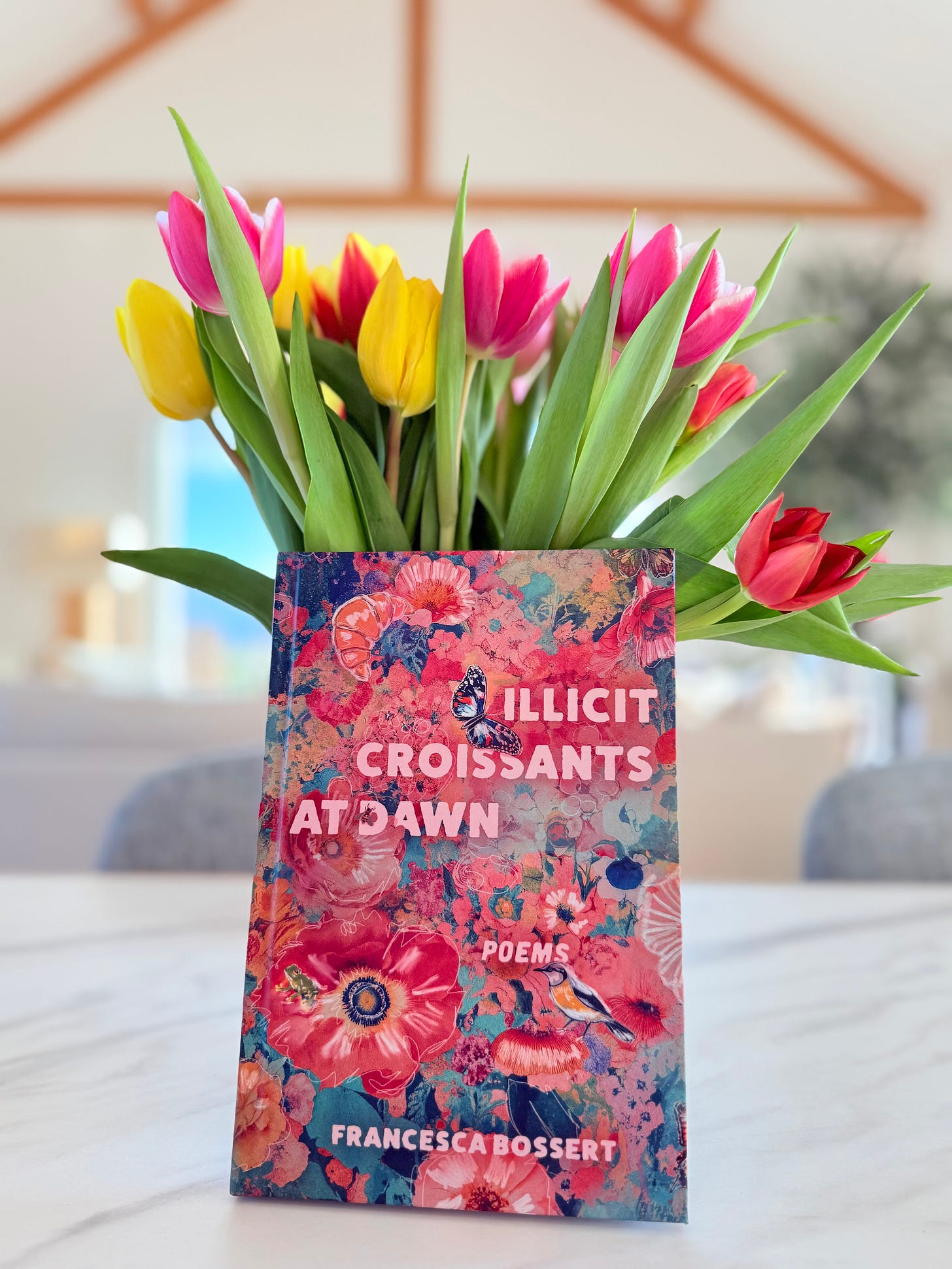 HOPE CLEARING ITS THROAT When glass grabs the light, magic swirls, giddy on rainbows. Luminescence leaps, lands, pulses joy through silent exaltations. Hope waits in a dark corner, wishing we would listen. With love and gratitude, Francesca xx Illicit Croissants At Dawn : poems