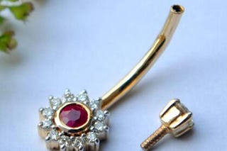 A ruby and diamond belly-button piercing